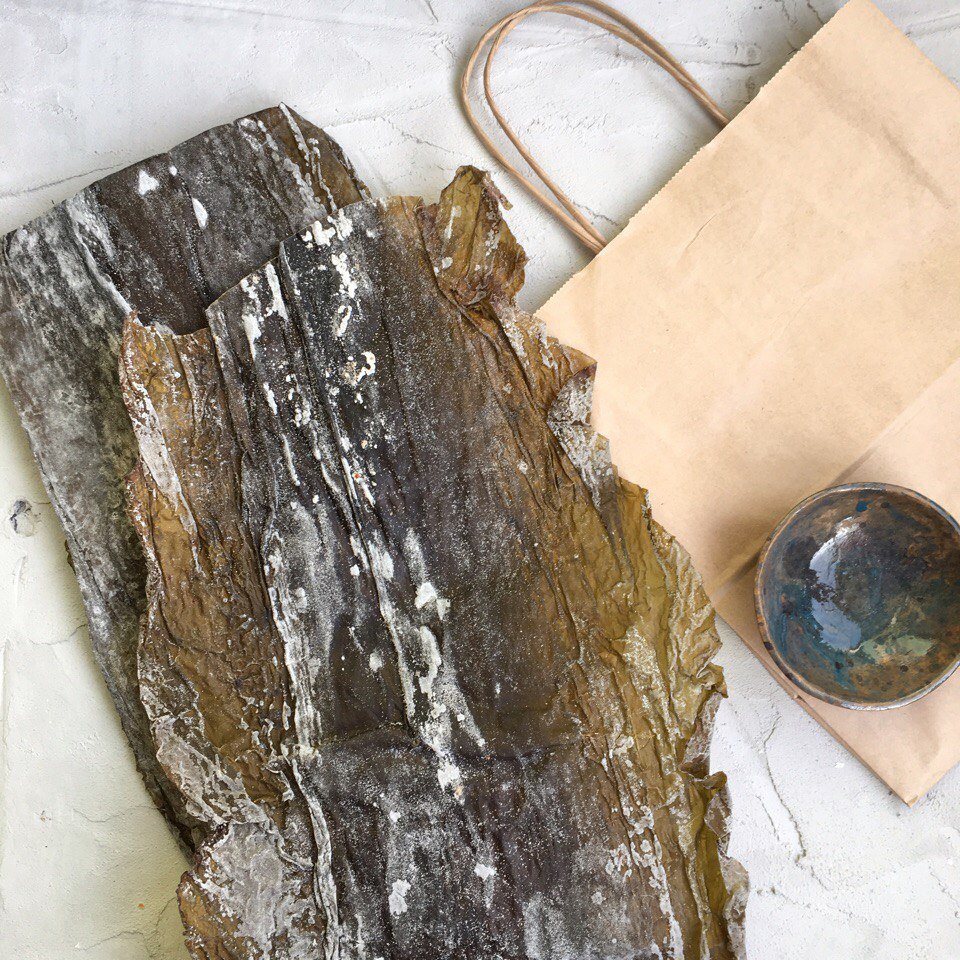 Листы морской дикорастущей водоросли Laminaria sacharina, высушенные естественным путём.